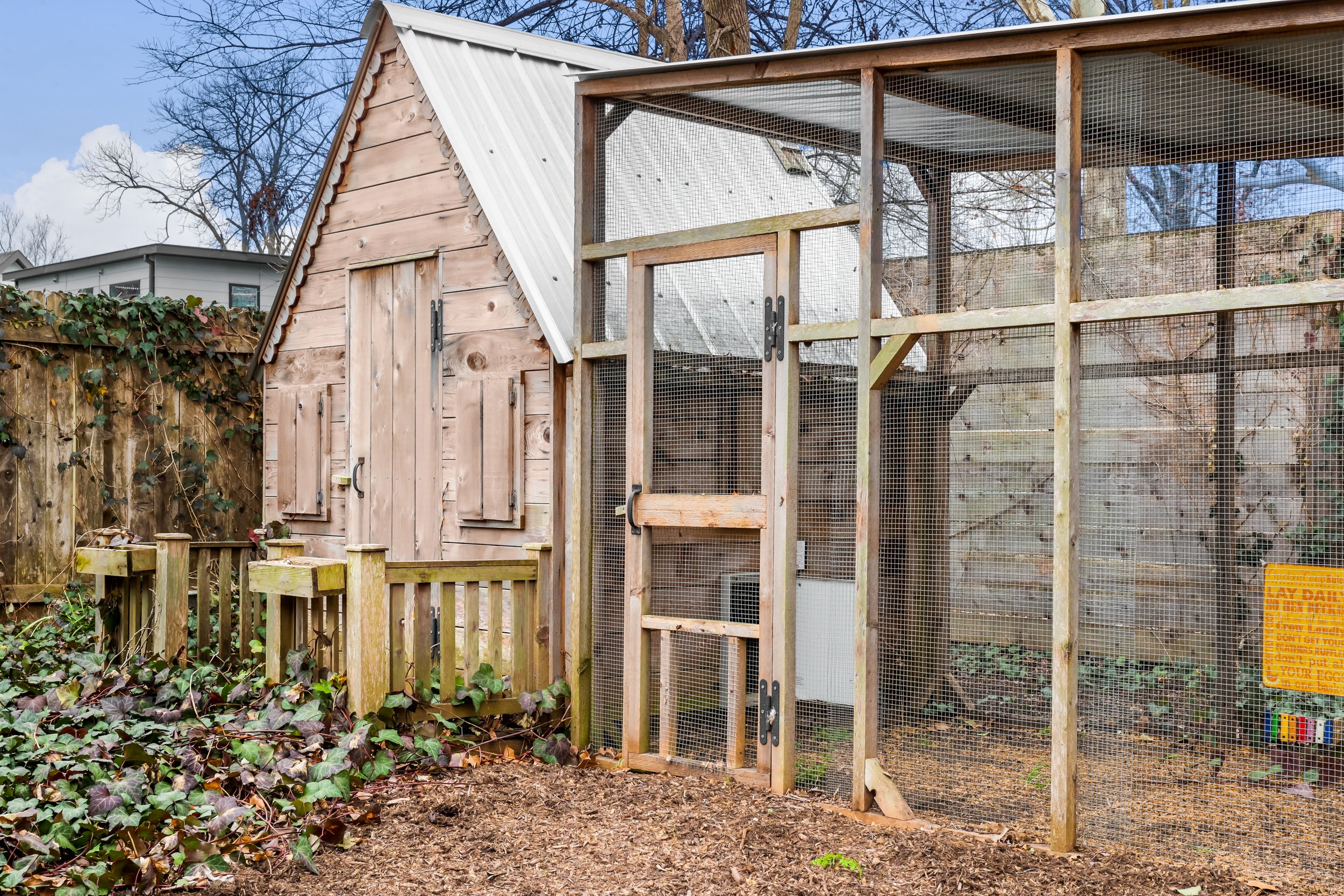 The primary suite and living room space both open to a lovely, covered screened-in porch. From the back porch, enjoy the view of your large backyard with multiple producing Texas pecan trees and an incredible chicken coop! There's plenty of room to entertain outdoors in the professionally landscaped yard, oversized carport, and front and back porches.